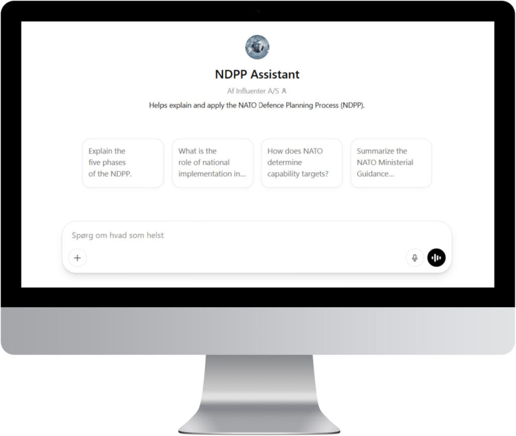 Få adgang til en dedikeret GPT-assistent udviklet specifikt til at give strategisk og praktisk indsigt i NATO Defence Planning Process (NDPP). Dette værktøj er ideelt for beslutningstagere, virksomheder og fagpersoner med interesse i forsvarspolitik og internationale samarbejder.